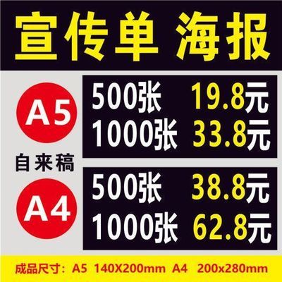 深圳发货印刷超市彩页宣传单页A5A4A3开业海报折页定制黑白彩色