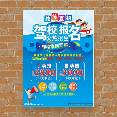 驾校招生定制海报来图打印宣传单印刷写真喷绘布制作招生海报墙纸
