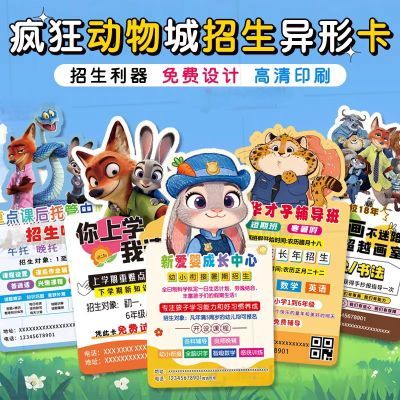 疯狂动物城托管书法招生卡设计异形试听卡课程表定制写字班宣传单