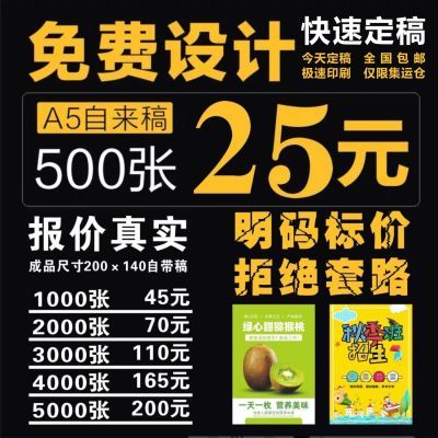 深圳发货印刷超市彩页宣传单页A5A4A3开业海报折页定制黑白彩色