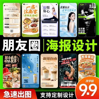 朋友圈手机海报设计广告宣传修图私域自媒体封面头像本地定制服务