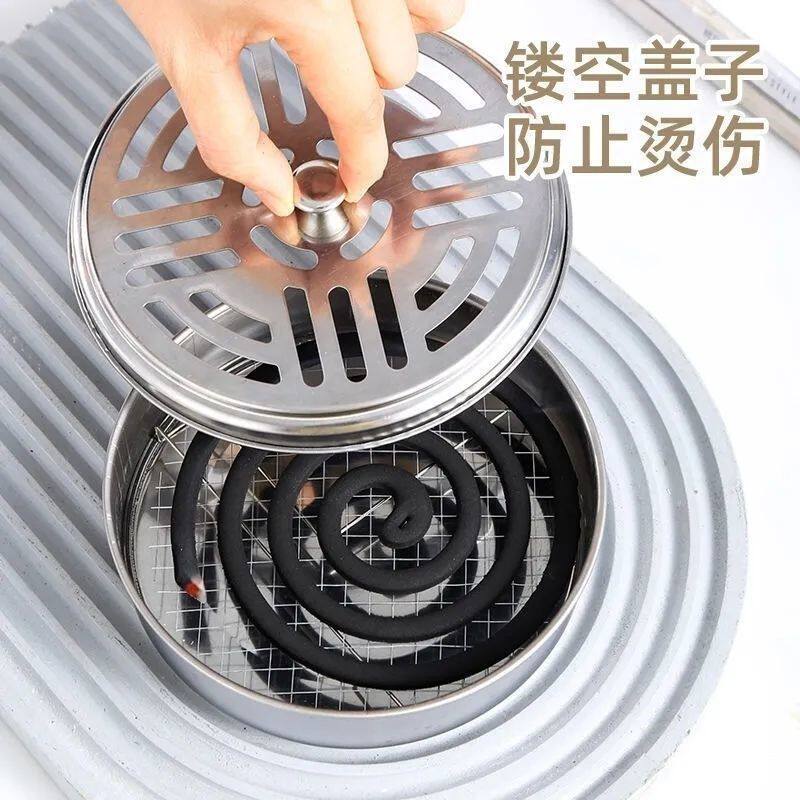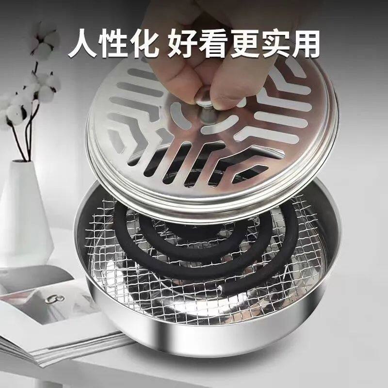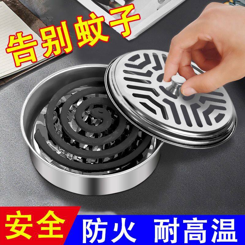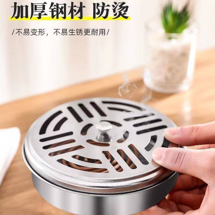 不锈钢防火防烫蚊香盘带盖专用盘大号接灰盒家用托盘蚊香盒