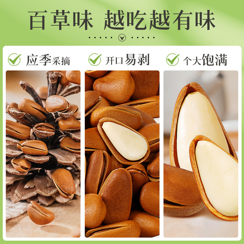 百草味罐装开口东北松子500g特大颗粒坚果手剥健康零食干果