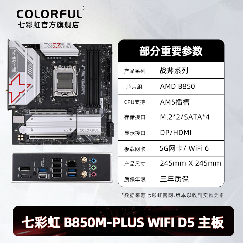 七彩虹B850M DDR5台式机电竞游戏主板AM5套装7500F/9700X/9850X3D