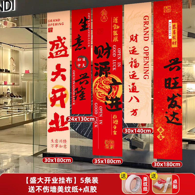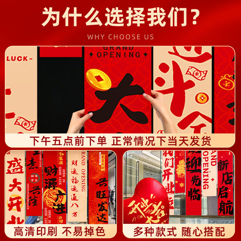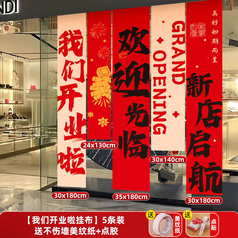 新店开业氛围门店装饰场景店铺门店气氛布置开业大吉横幅拉条幅