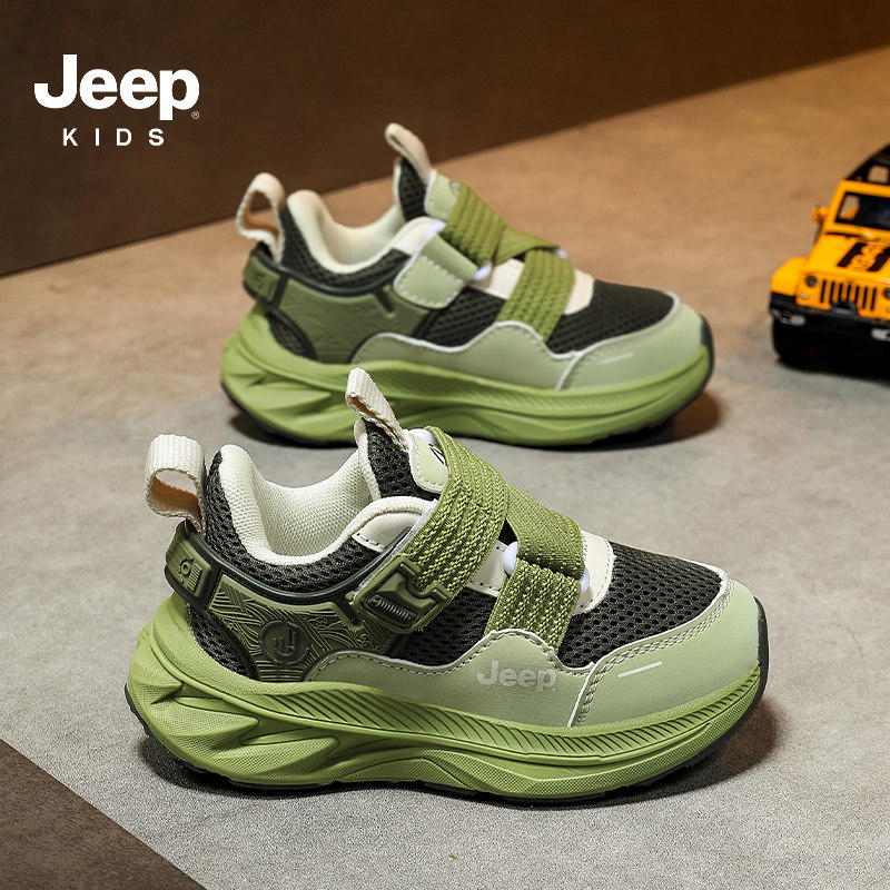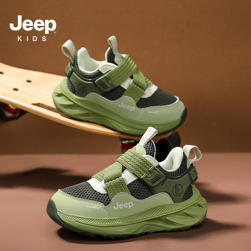Jeep男童运动鞋2026春季网面透气休闲鞋中大童户外防滑儿童跑步鞋