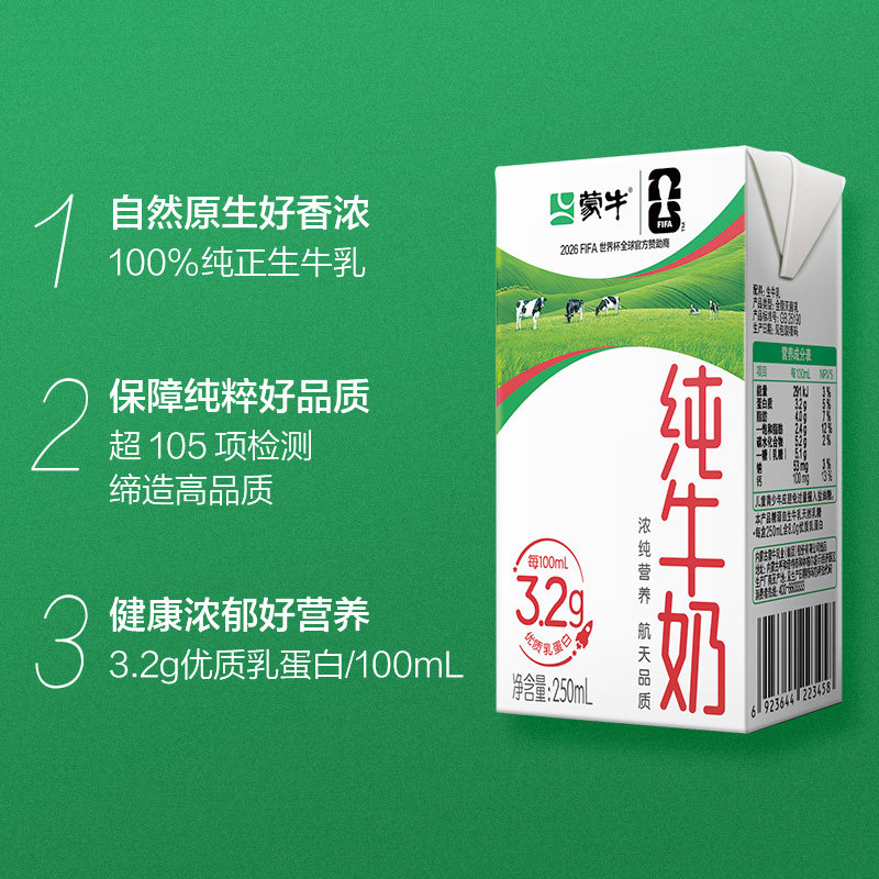 【百亿补贴】蒙牛纯牛奶全脂灭菌乳利乐包250ml×21包×2提