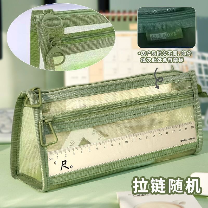 网纱莫兰迪笔袋ins简约透明双层大容量文具学生考试拉链收纳袋