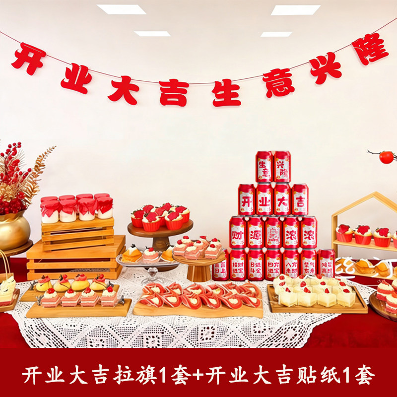 开业大吉生意兴隆摆件公司店铺门店甜品台开业装饰可乐贴纸开工