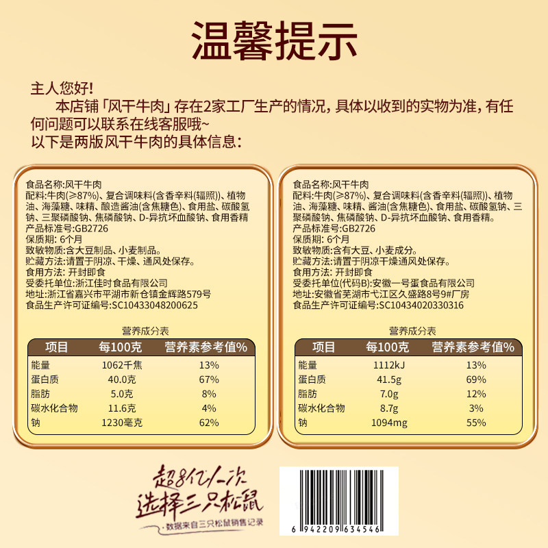 三只松鼠_风干牛肉18根约90g手撕牛肉干肉脯小包熟食小零食小吃ss