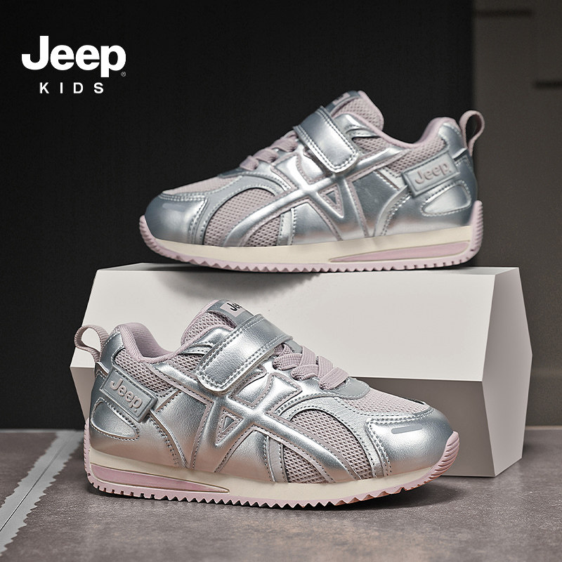 Jeep童鞋女童透气网面运动鞋2026新款男童阿甘鞋春秋软底跑步鞋子