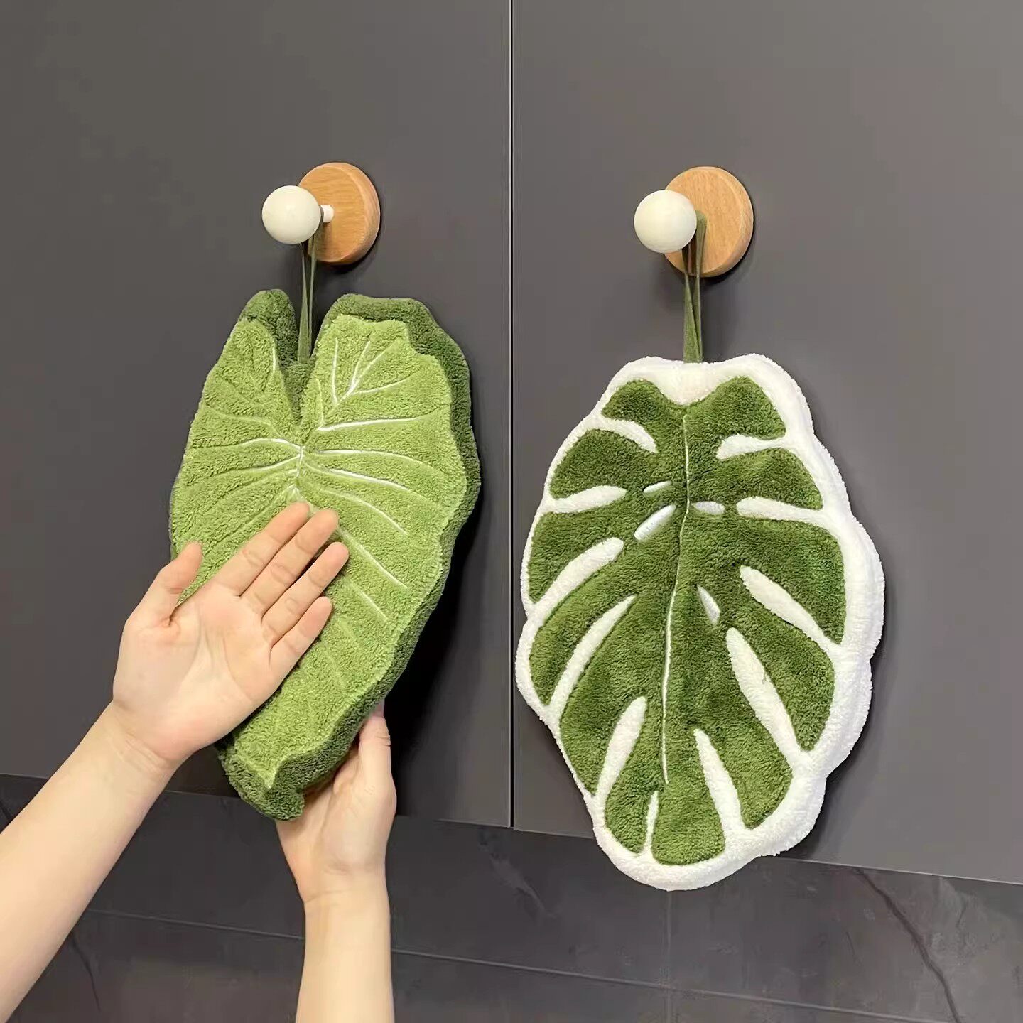 龟背竹叶子擦手巾可挂式家用厨房卫生间加厚吸水毛巾儿童植物手帕