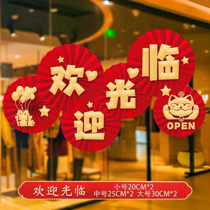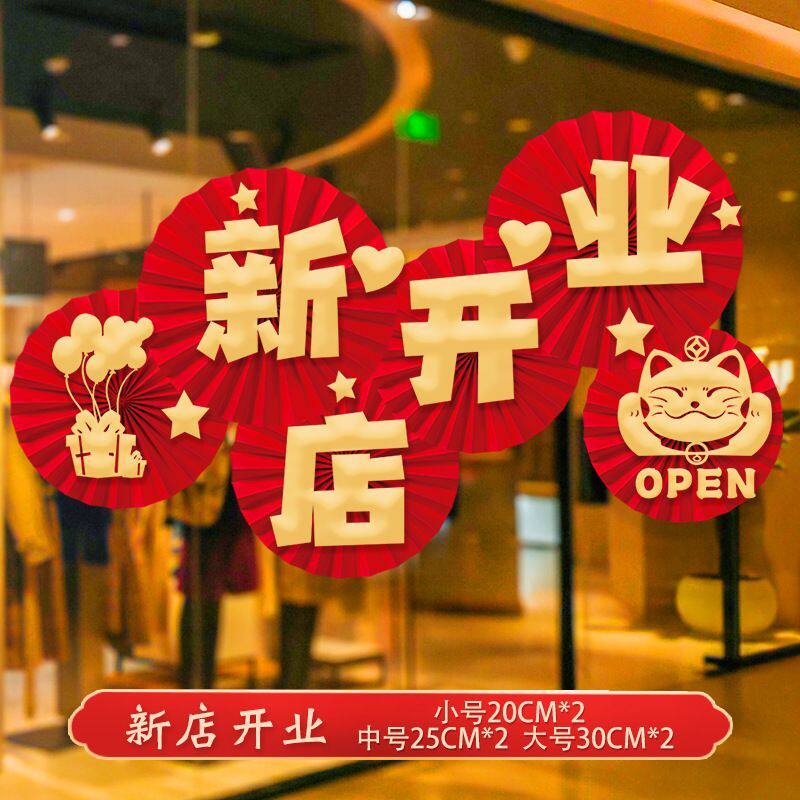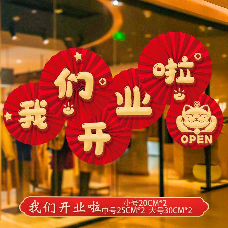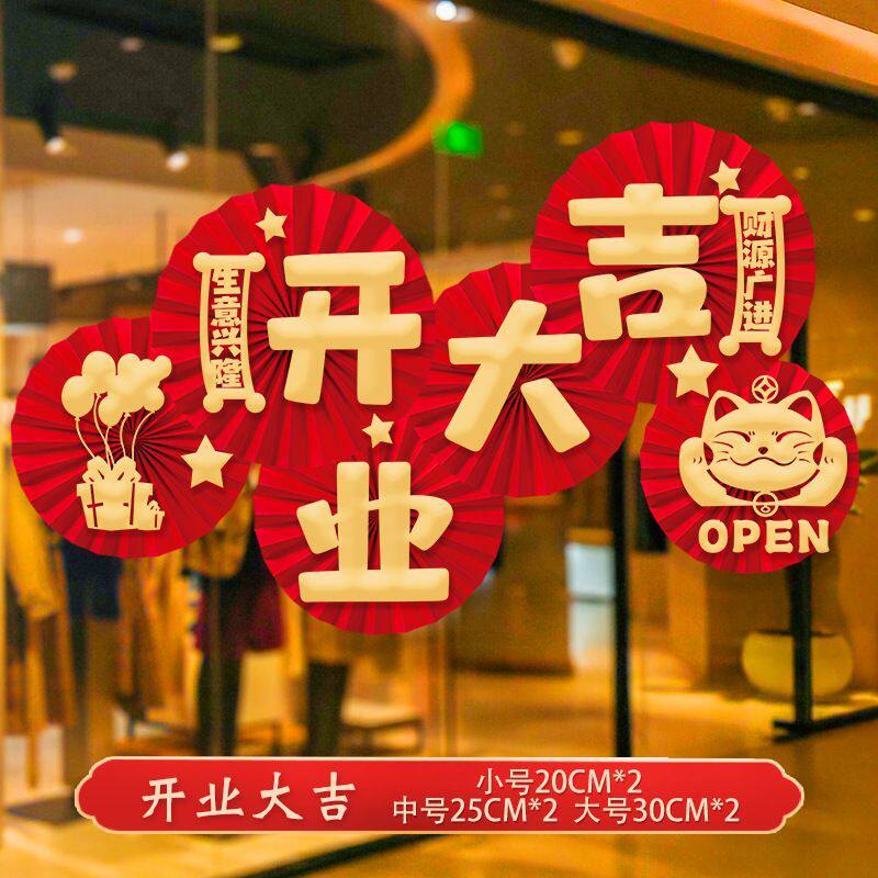 新店开业大吉生意兴隆摆件气氛布置门贴饭店店铺玻璃贴商铺纸扇花