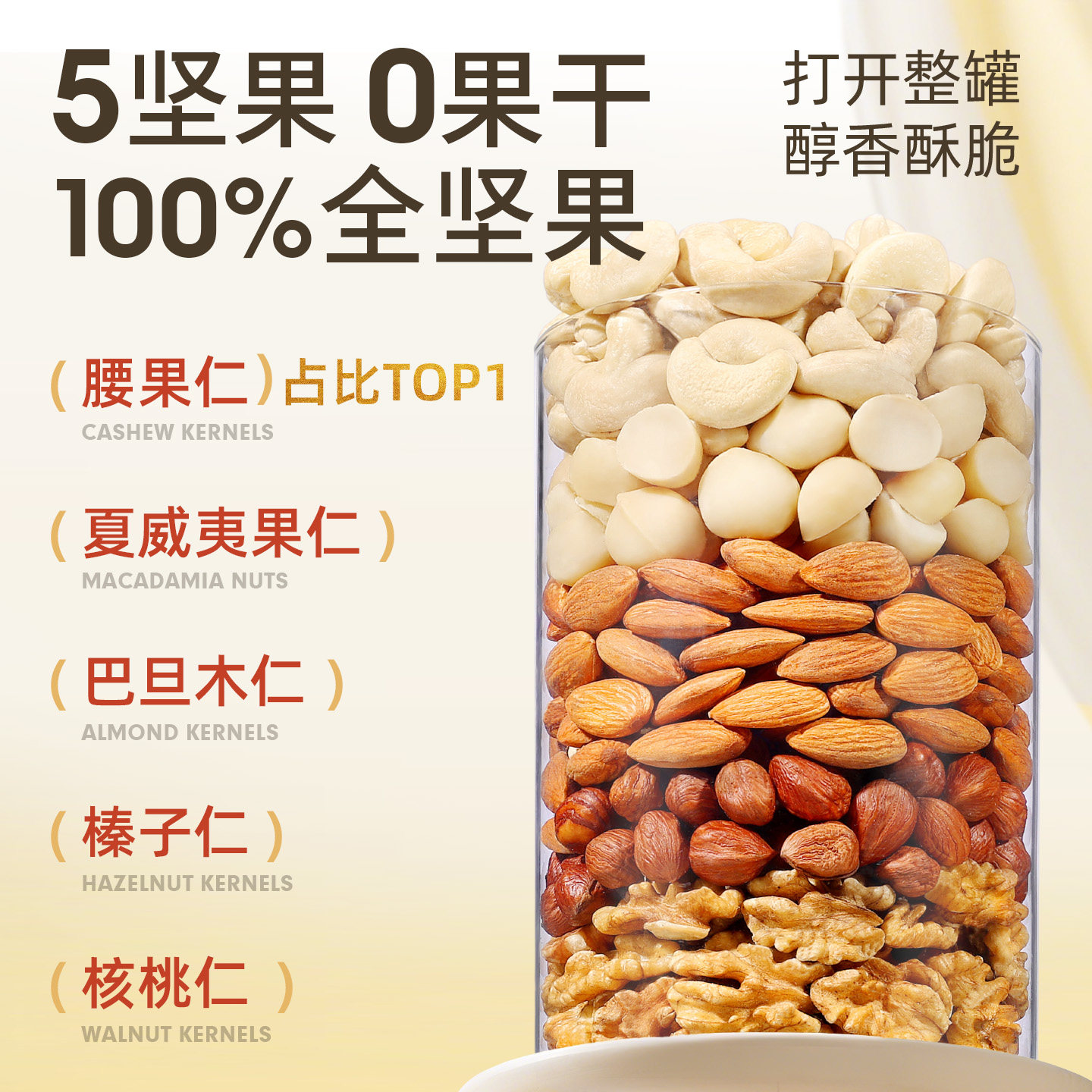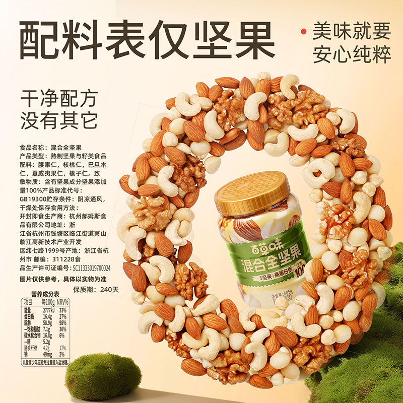百草味每日坚果纯罐装混合干果仁全坚果健康零食早餐孕妇原味营养