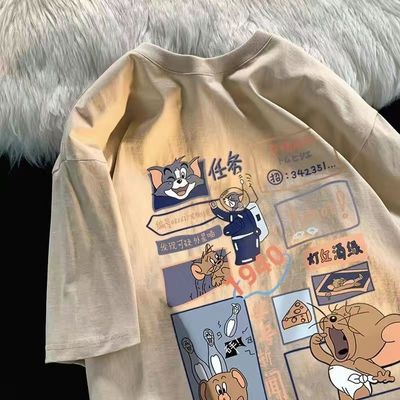 100%新疆棉2025新款猫和老鼠印花短袖t恤男女设计感小众情侣上衣