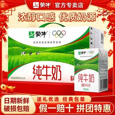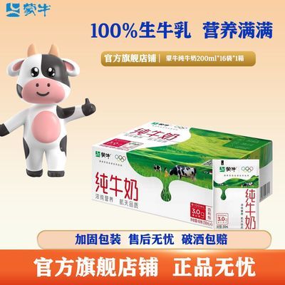 2月产 蒙牛纯牛奶200ml*24盒*1/2提营养纯奶新鲜速发促销特惠方包