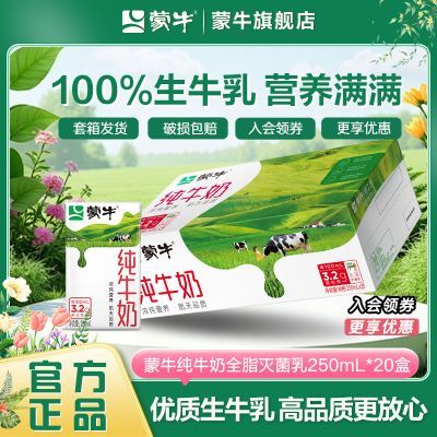 【2月新货】蒙牛纯牛奶250ml*20盒整箱批发学生营养早餐带提手