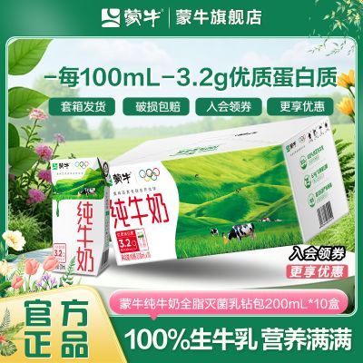 【4月新货】蒙牛纯牛奶200ml*10盒整箱批发学生宿舍营养早餐送礼