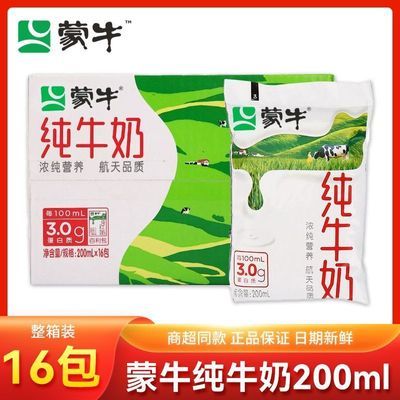 4月产蒙牛纯牛奶百利包200ml*16袋营养全脂牛奶早餐学生商超同款
