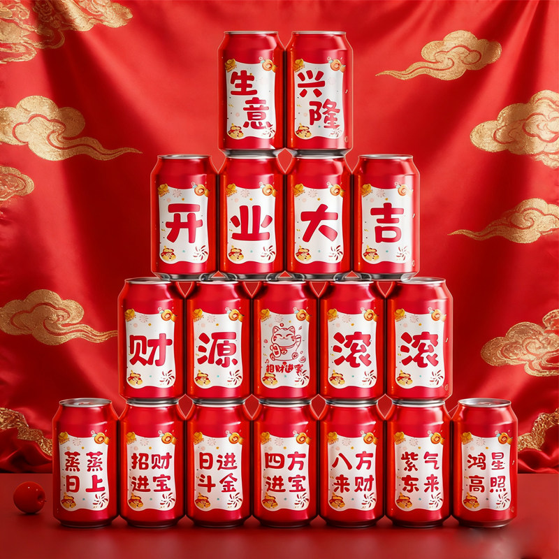 开业大吉生意兴隆摆件公司店铺门店甜品台开业装饰可乐贴纸开工