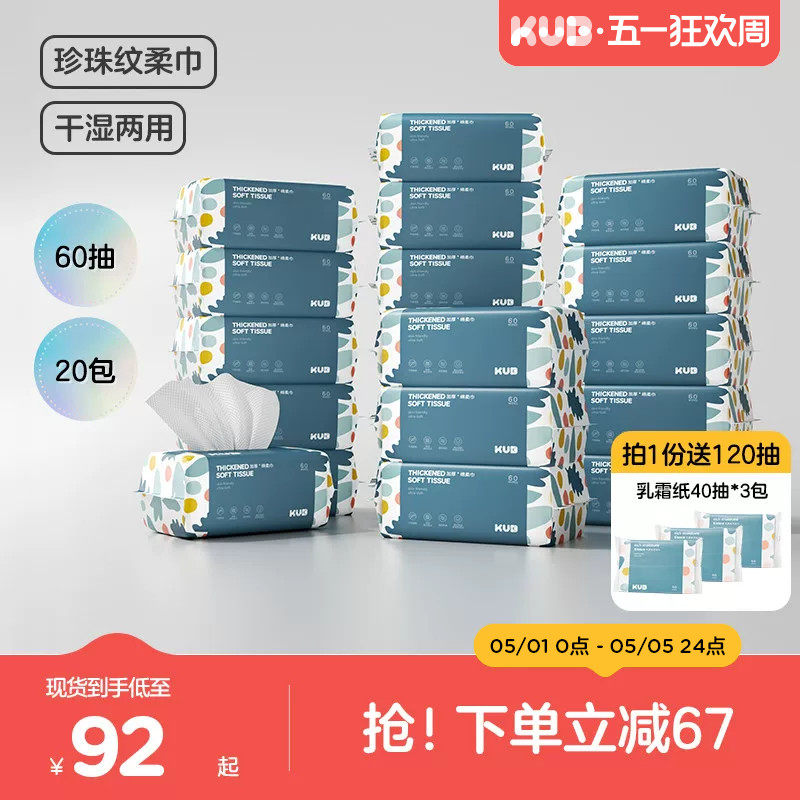 KUB可优比婴儿云柔巾乳霜保湿超柔抽纸保湿擦鼻涕柔纸巾80抽18包