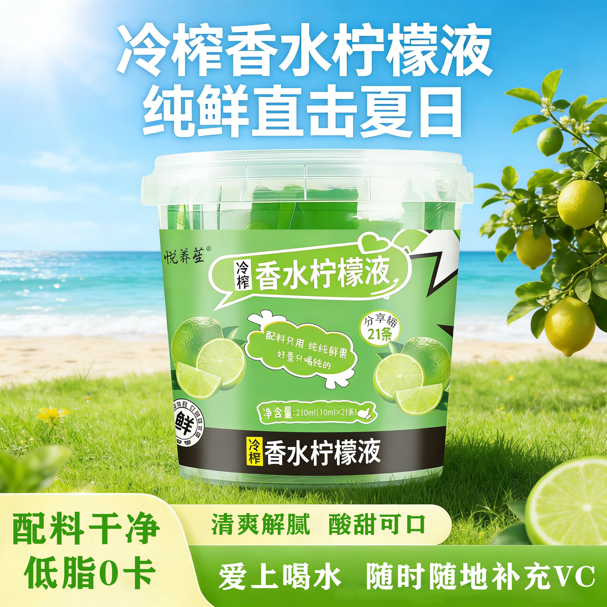 冷榨香水柠檬液果汁饮料0脂肪大餐救星桶装便携条装拆袋即饮10ml