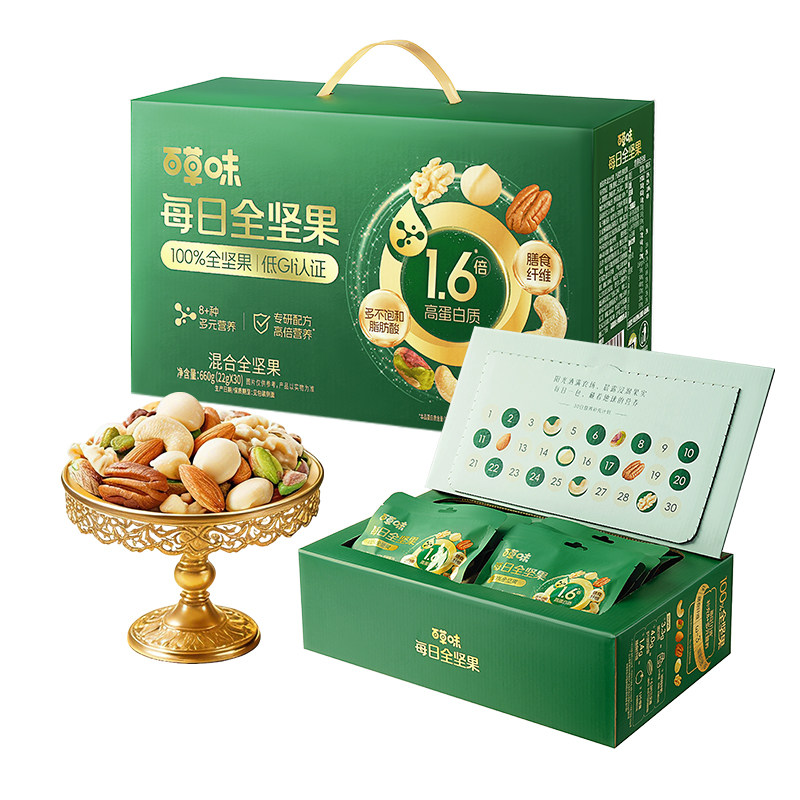 百草味每日坚果高蛋白质纯坚果低GI660g干果零食原味坚果孕妇专用