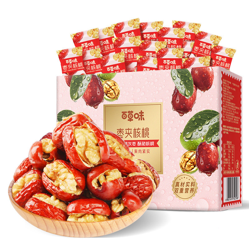 约115个百草味每日红枣夹核桃新疆大枣灰枣夹核桃枣仁派果干礼盒
