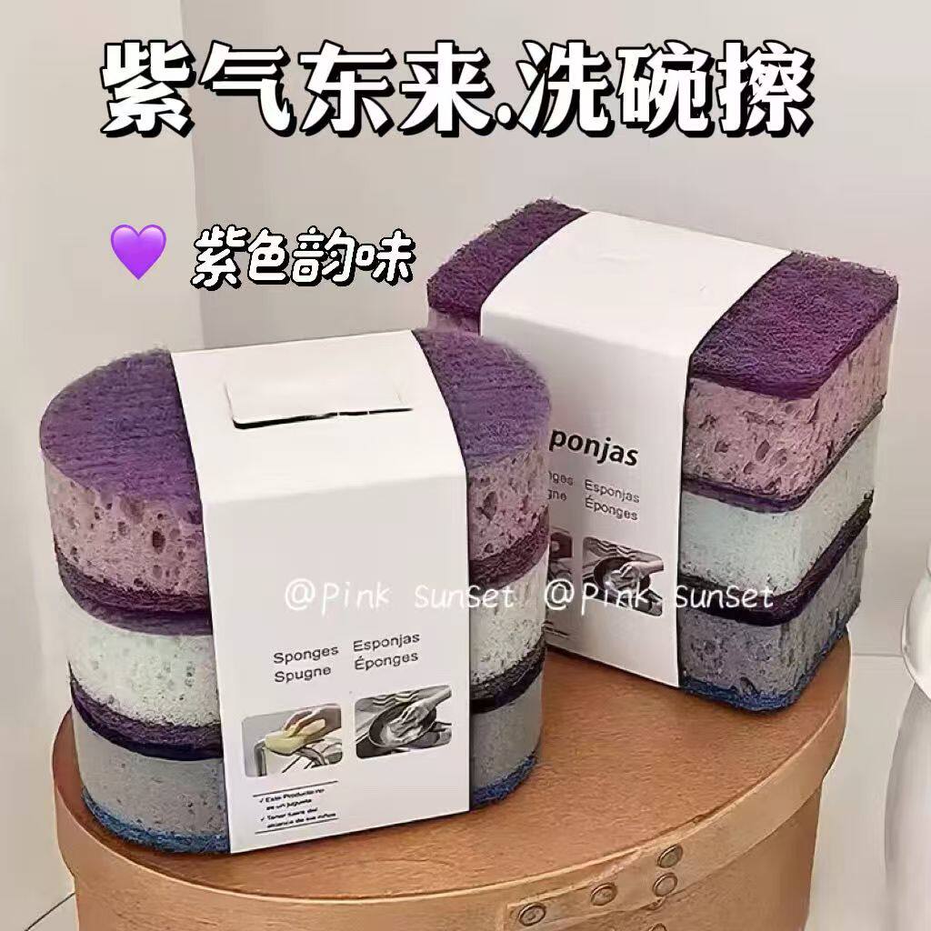 紫色系洗碗海绵擦神器ins高颜值海绵擦洗碗加厚刷碗清洁台面厨房