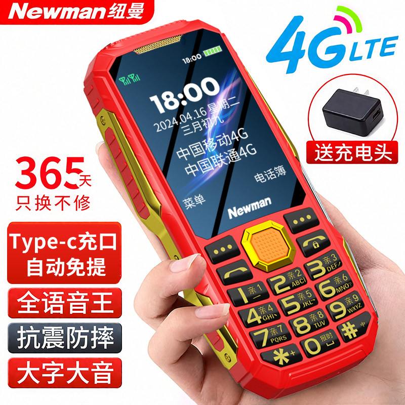 天猫 [增强三防]纽曼手机全网通4G老年人机手机电霸超长待机大电池大音量大字体直板按键耐用防摔户外用老人手机
