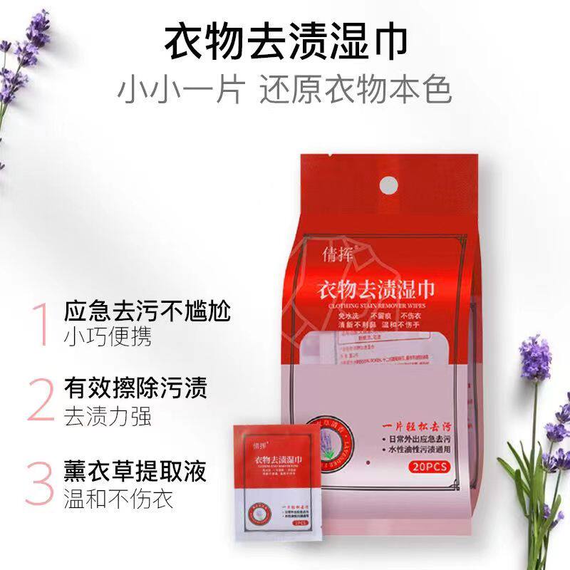 倩挥衣物去渍湿巾免水洗专用独立包装单片清理随身装擦拭去油渍洗